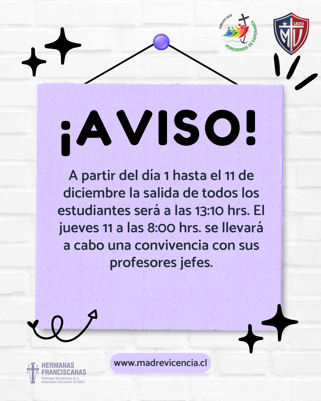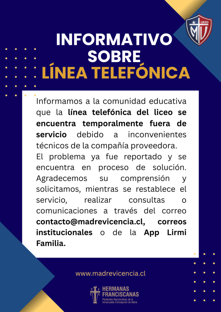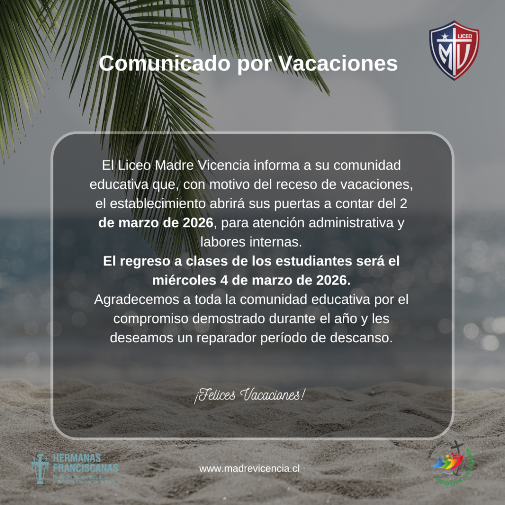 Estimados apoderadosSe les informa que para justificar ausencias y enviar certificados médicos de su pupilo, debe realizarlo a través del correo certificados@madrevicencia.cl