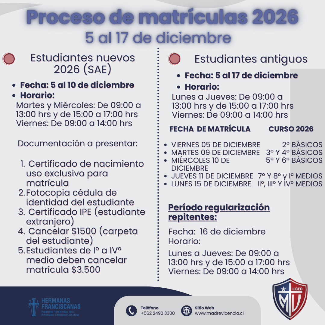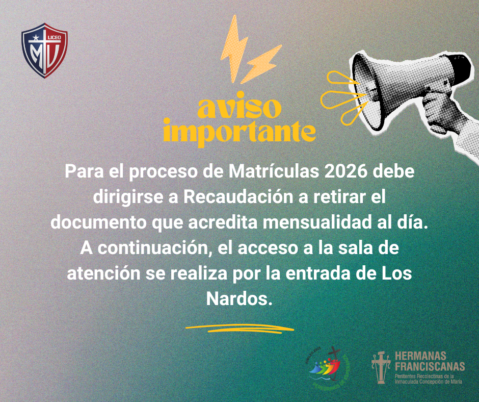 Estimados apoderados, les compartimos información importante sobre el proceso de matrícula 2026, compromisos económicos y continuidad escolar (para acceder, hacer clic en el título o el ícono.)